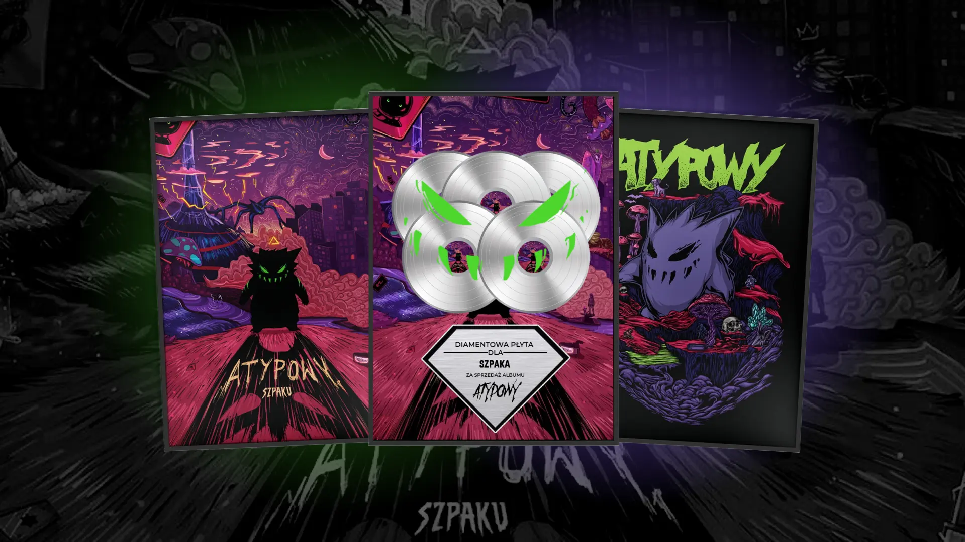 Limitowana edycja „Atypowy” to projekt, w którym mogłem połączyć kreatywny warsztat z wizualnym językiem bliskim fanom Szpaka. Z okazji zdobycia statusu diamentowej płyty powstały ilustracje i projekty graficzne, które trafiły na odzież, akcesoria i gadżety, tworząc spójny zestaw kolekcjonerski. To przykład, jak projektować materiały, które nie tylko promują album, ale też stają się elementem fanowskiej tożsamości.